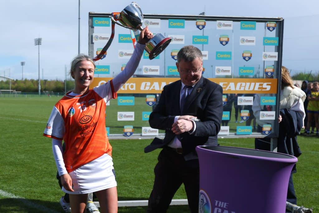 Armagh’s Rachael Trainor lifts the trophy